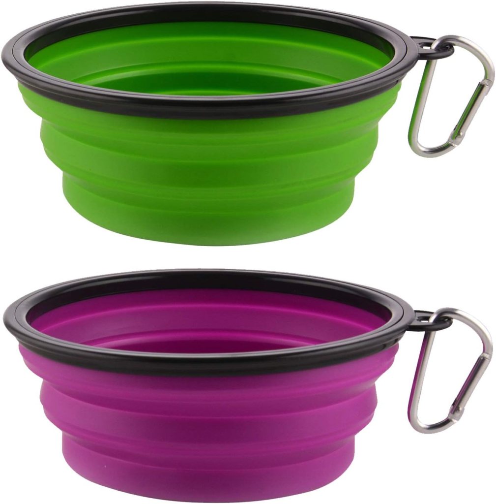 Collapsible water bowls are so helpful. You can pack them easily in your backpack if you’re going on adventures, camping, backpacking, the dog park… you name it. These ones are great and you can clip them to a backpack; so easy!